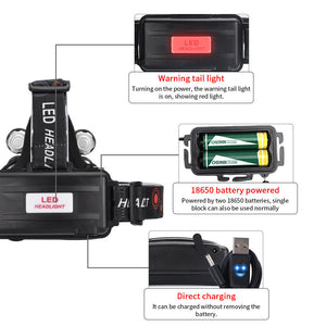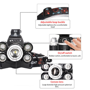 90000LM 5 Head XM-L LED Headlamp Headlight Head Torch with Extra Flashlight 5 Head LED Headlamp With Free FlashlightFeatures Great for running, hiking, hunting, fishing, and any outdoor activities Also...