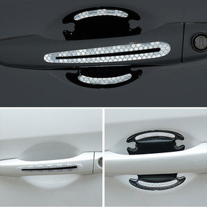 8x Reflective Car Door Handle Safety Strip Protective Film Sticker Warning Decal Features Premium Quality: Made of high quality carbon fiber like ABS and colorful reflective material. it's high flexibility...