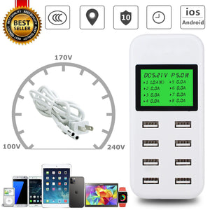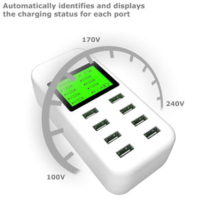 8-Port Smart Multi USB AC Wall Charger Hub Smart Fast Wall Charging Station LCD Features 8 USB ports, can charge up to 8 devices at the same time Each USB...