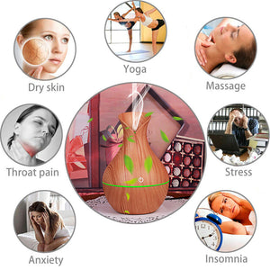Essential Oil Diffuser Humidifier Aromatherapy Walnut Wood Grain Vase Aroma LED Features Safety feature: Product does not turn unless there is water in the container Cleaning: Wipe clean with a...