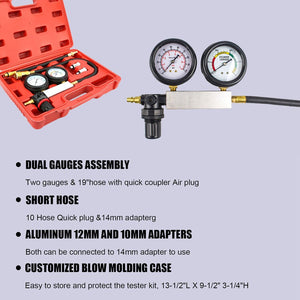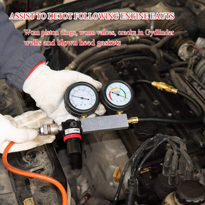 Engine Compression Diagnosis Tester Cylinder Leak Down Gauges Detector Leakage Features UNIVERSAL FITMENT. Suits all local and imported cars and trucks, ideal for testing trucks and car models where clearance...