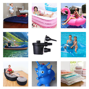 Portable Electric Pump Air Compressor Portable and versatile. 3 nozzles to cater for most types of inflatables High power output Quickly inflates & Deflates Indoor and household use only Specifications...