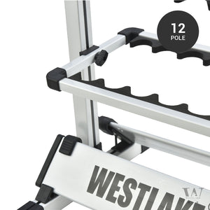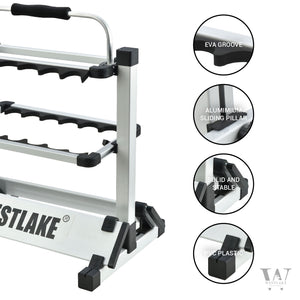 12 Rod Fishing Pole Holder Aluminum Alloy Rack Stand Portable Storage Tool US Features: Stand keeps fishing rods in full upright position Durable and sturdy Large capacity Made of rust-resistant aluminum...