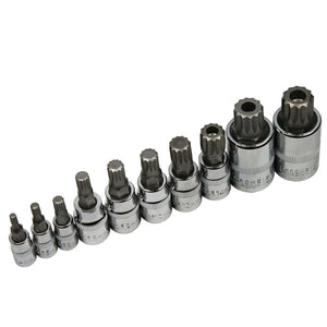 10pc XZN Triple Square 12 Point Spline Bit socket Set 4MM - 12MM 12 Point Spline Bit Socket Set Features Alloy steel bits Chrome finish Twelve points Used on...