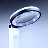 With a large 2.5x - 80mm (diameter) primary and a 8x - 25mm secondary glasses, bright 10 light LED illumination, and multiple folding positions, this sleek magnifier lamp is ideal for reading, needlework, and jewelry repair. Main features: